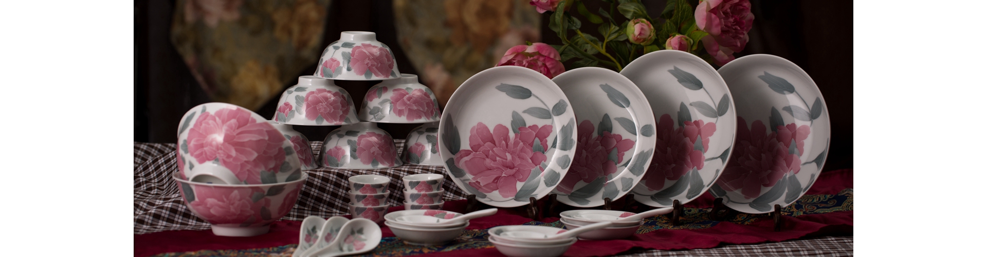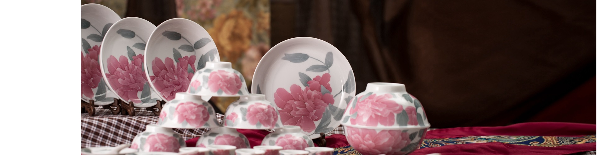 釉下五彩牡丹花毛瓷杯碟