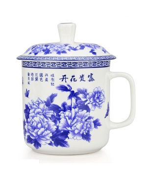 釉下五彩韶山杯蓝牡丹