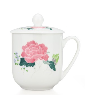 釉下五彩常委杯白牡丹