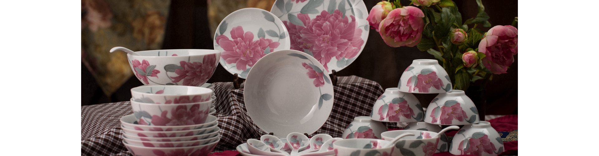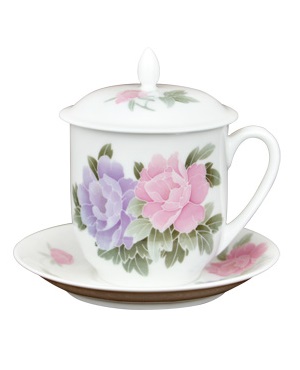 釉下五彩牡丹花毛瓷杯碟