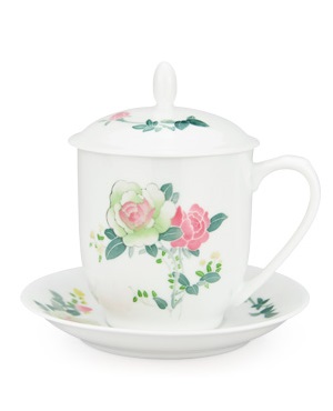 釉下五彩毛瓷杯碟月季