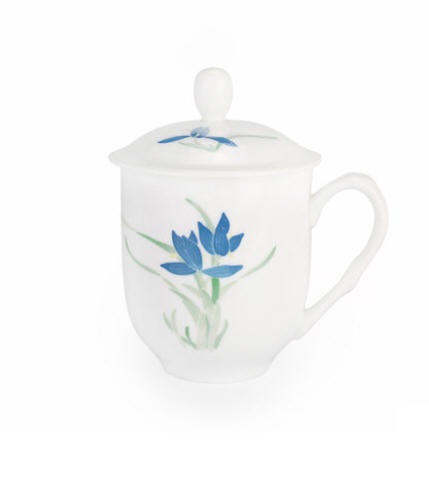 釉下五彩将军杯蝴蝶兰