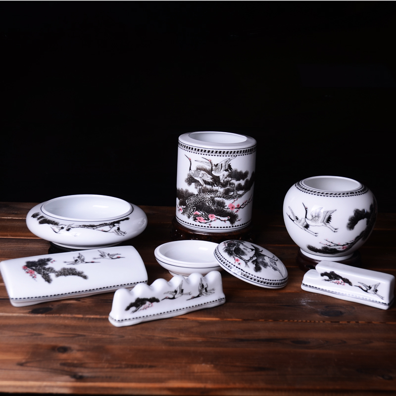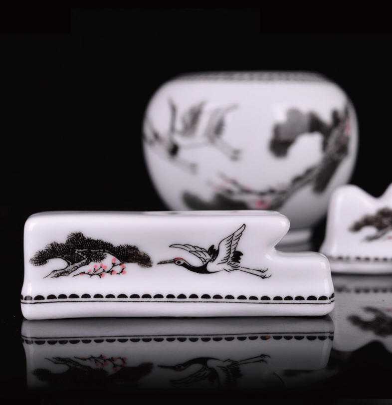 • 松鹤陶瓷办公文具笔架笔筒组合